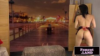 Smalltitted tranny stroking her dick