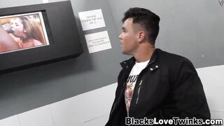 Dude gobbles black dick thru gloryhole
