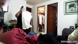 Jerking off in front of Maid, then grabbing her huge melons