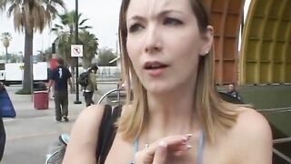Two dudes invite young blonde in their van and fuck her