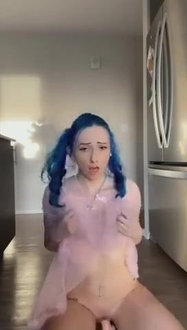 I am wearing a cute pink dress and I get on my knees on the hardwood and bounce on my dildo for you.