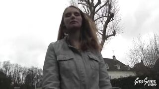 Slutty girl with big, saggy tits, Melanie with 2 guys