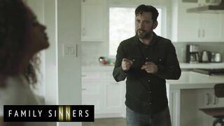 FAMILY SINNERS - Ebony Babe Moans As Her Father-In-Law Licks And Spanks Her Wet, Needy Pussy